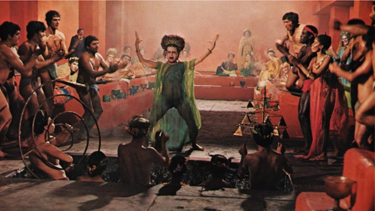 Some 20 years later, the Emperor Nero “made his parties last from midday to midnight,” Suetonius writes (Life of Nero, 27). All the senses needed to be sated in the course of these long feasts. They were symphonies of food, music and pliant bodies – to look at or to ravish – while slaves made flowers rain down from the ceiling and filled the air with perfume.
