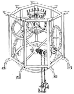 Their first mention is in the Italian physician, astronomer and mechanical engineer Giovanni de Dondi’s treatise Tractatus Astrarii, or Planetarium. De Dondi states that early clocks used gravity as their power source and were driven by weights.