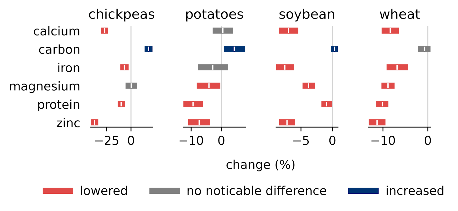 We looked at 32 nutrients across 43 different crops. For the first time, we could see a clear shift in plant composition across a wide range of species and essential nutrients.
