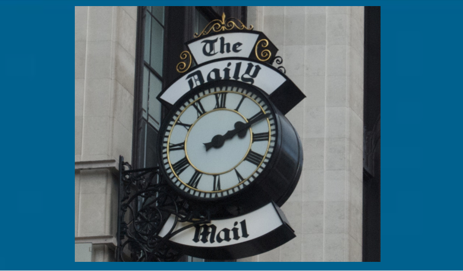 The Daily Mail clock, on the Young Street side of the Barkers building just off Kensington High Street Picture by Alex.muller