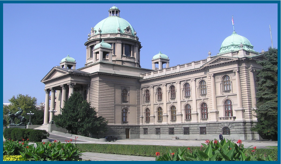 Serbian National Assembly building in Belgrade” by Filip Maljković, CC BY-SA 2.0