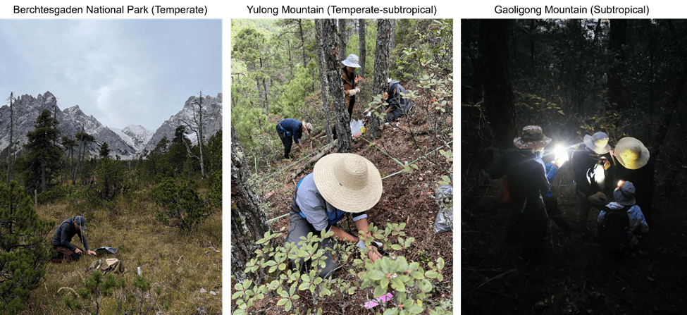 How tightly are the biological communities above and below the forest floor connected? In mountain forests, those associations remain poorly understood. While plants and soil microbes interact intimately, such as through symbioses or nutrient exchange, most evidence for these associations comes from grasslands or a few experiments within single forest sites. It remains unclear whether such associations in natural forests are consistent across broader climatic and environmental gradients.