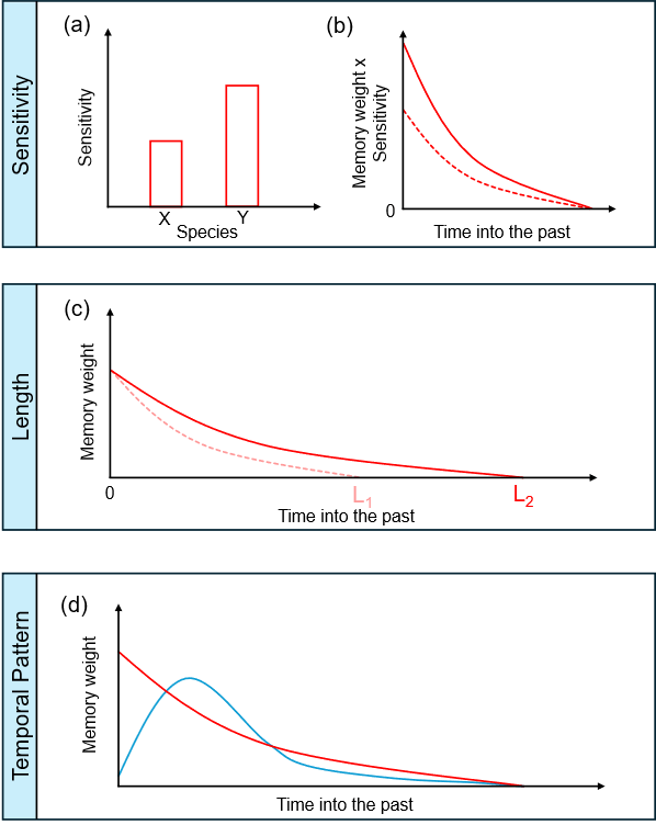 Not every change in tree growth following a disturbance should be interpreted as a disturbance legacy effect. Tree growth is inherently shaped by past environmental conditions, a phenomenon referred to as ecological memory. The term ecological memory describes the influence of antecedent conditions (e.g. climate) on current or future ecological responses (e.g. tree growth). This feature can create persistent patterns even in the absence of a disturbance event, making attribution difficult to determine. Thus, disturbance legacy effects can only be distinguished when ecological memory is explicitly considered. In this view, legacy effects emerge when a disturbance modifies how past conditions continue to influence present growth, leading to a deviation from the baseline memory-driven trajectory. Under this memory-based framework, quantifying legacy effects entails two steps: (1) measure the baseline memory; (2) measure the change of the three components of memory in the legacy window.