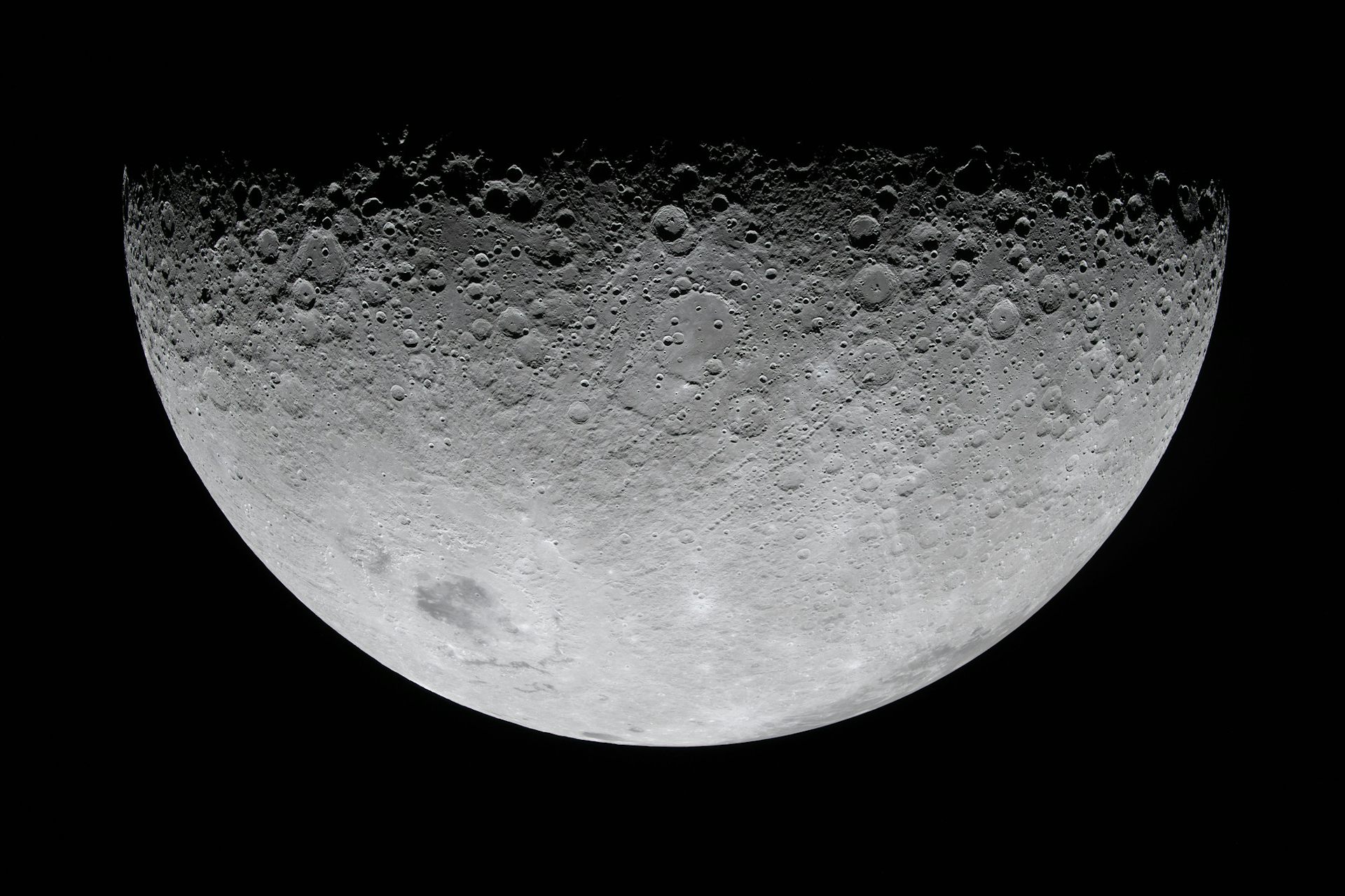 Compared with the face we see from Earth, the lunar far side is extraordinarily rugged. It is peppered with impact craters and has very few smooth lunar maria. Why this disparity exists is still debated.
