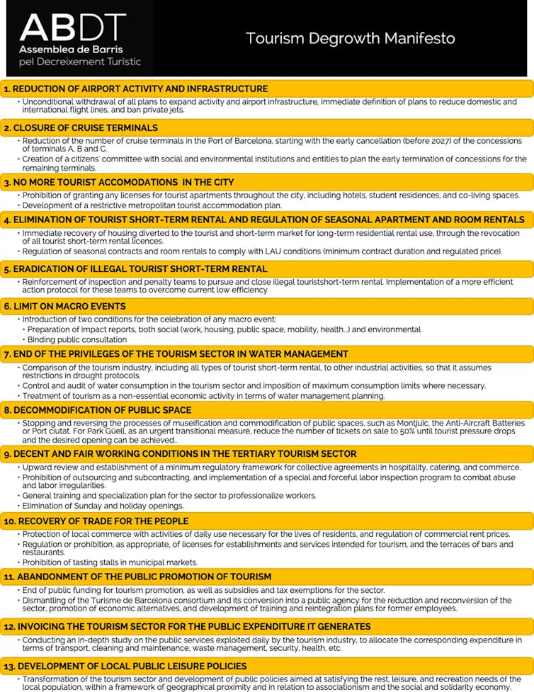 What distinguishes this current wave of activism from its predecessors is a shift from blunt opposition to providing organised, constructive proposals. At one major demonstration in Barcelona in July 2024, activists presented a manifesto calling for clear measures to reduce economic dependence on tourism, and for a transition towards an eco-social economy.