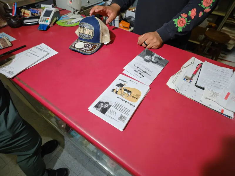 Sanchez gave the booklet and postcard to a worker she met who lived near a farm in Clark County. The documents served as calling cards and proof to skeptical workers that she and Jameel were legitimate reporters. A roommate of the worker called Sanchez soon after and recounted his experiences working on a farm. Then he shared the postcard with his aunt, who works on another dairy farm, and the aunt called Sanchez. That woman’s son had been crushed by farm machinery and nearly lost his leg a year earlier.