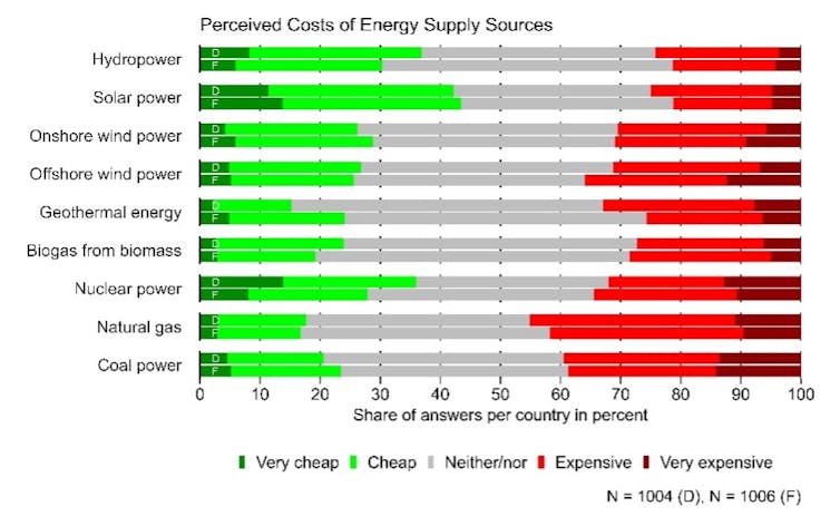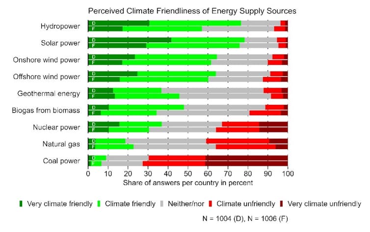 If these words are to signify anything other than wishful pleasantries, however, both leaders could do worse than thinking of their energy cooperation. But can the renewables enthusiasts of Berlin and atomic supporters of Paris ever see eye to eye? Despite recent quarrels on the use for nuclear power, the role of gas in the energy transition and the future of combustion engines, our French German research at Grenoble Management School and Deutsch-Französisches Institut für Umweltforschung at [Karlsruhe Institute of Technology] show that French and German citizens share surprisingly similar views on energy.