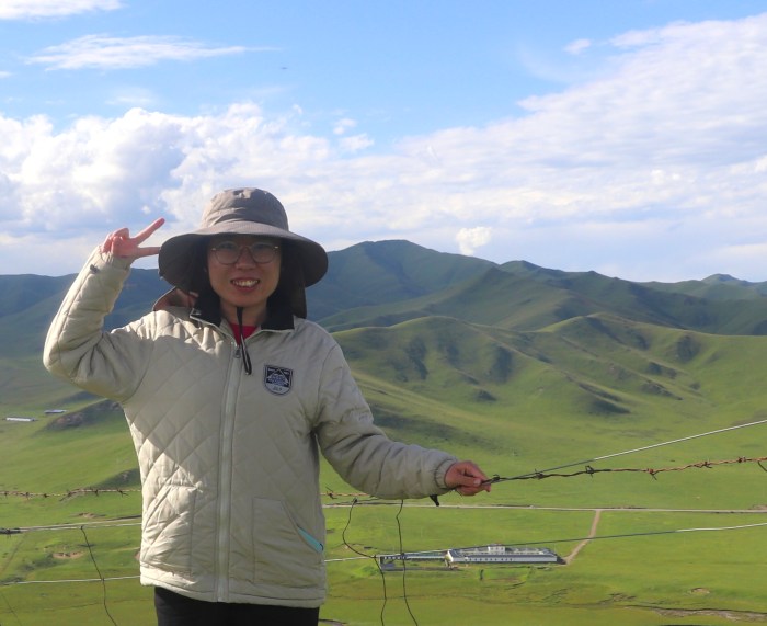 The author, Jie Li. During my fieldwork in an alpine meadow on the Tibetan Plateau (Credit: Kechang Niu)