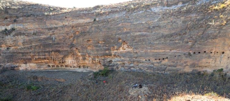 Our study of high-resolution satellite images revealed the Teniky site was much larger than previously known. It showed there were more terraces and stone walls on a hill 2km to the west. This led us to take a closer look, hoping to get a better sense of who had lived there and when.
