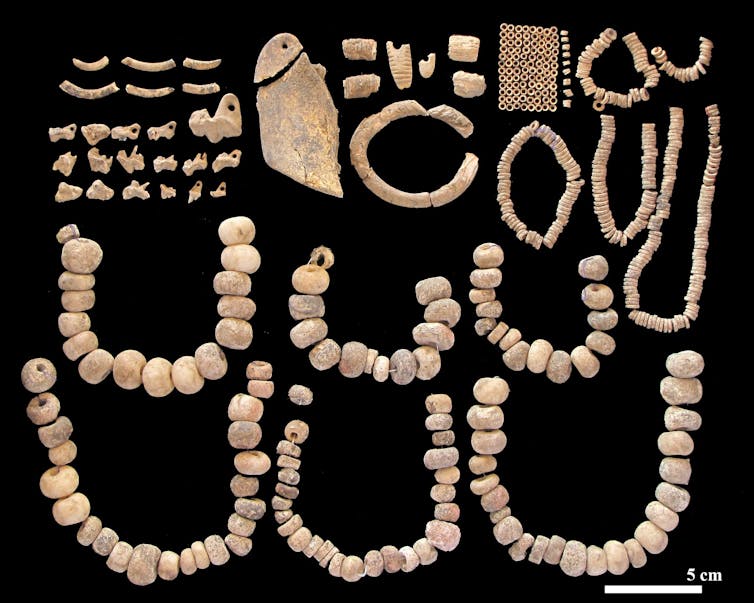 What we found was a strikingly diverse set of beads that varied by site. The visual characteristics of some of the beads – colour, lustre and so on – may have made them particularly valuable or had a special meaning economically, socially, spiritually or symbolically. Their source and workability may also have given them a certain value.