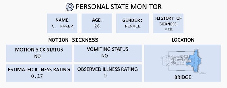 The data is shown on a dashboard which can be accessed, by, for instance, a ship’s doctor to see who might need medical attention, or by the captain to potentially plot an altered course to minimise cases of motion sickness.